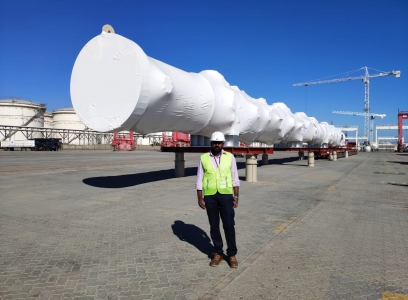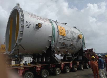 End-to-end handling of oversized industrial vessels, from port discharge to inland transportation and final positioning.